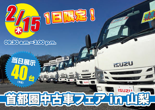 2月15日、「首都圏中古車フェスタ in 山梨」を開催します