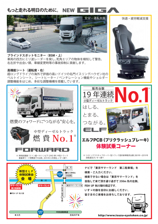 大商談会ではギガの他にも中型車フォワード、小型車エルフも展示いたします。