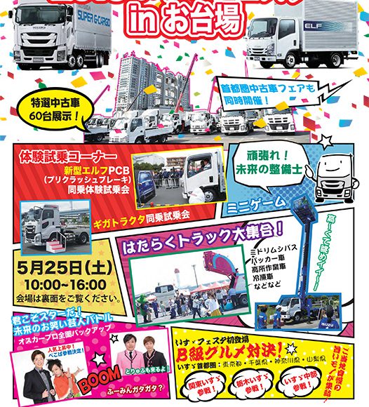 いすゞ自動車首都圏では日頃のご愛顧に感謝を込めて「2019いすゞフェスタinお台場」を開催します。